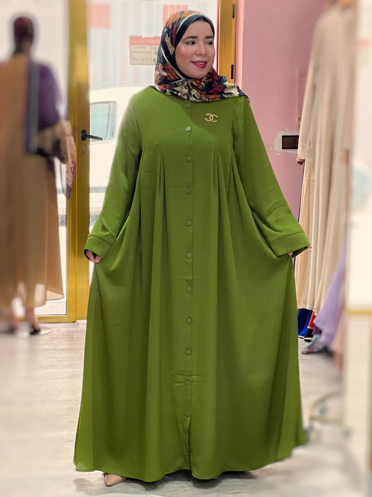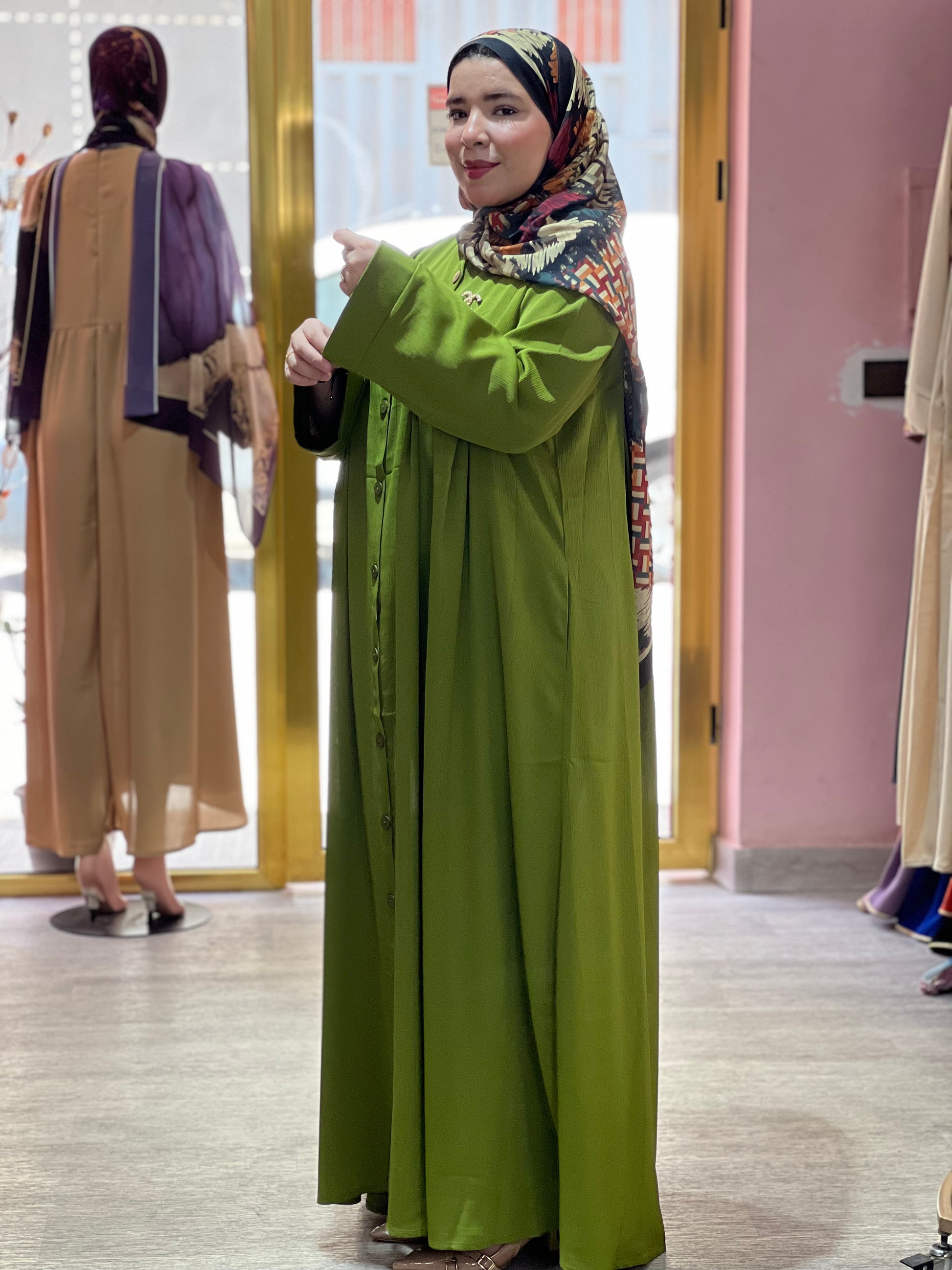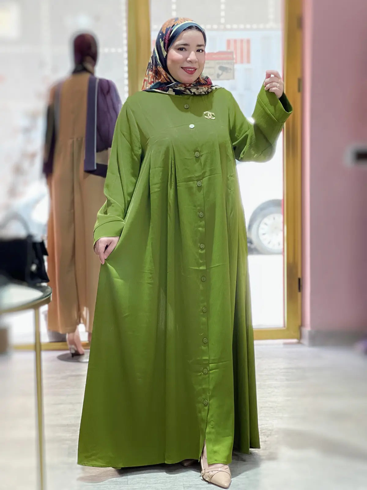 مصنوع من قماش كريب زوم، خفيف ومريح، لا يصف ولا يشفّ ولا يحتاج إلى بطانة
