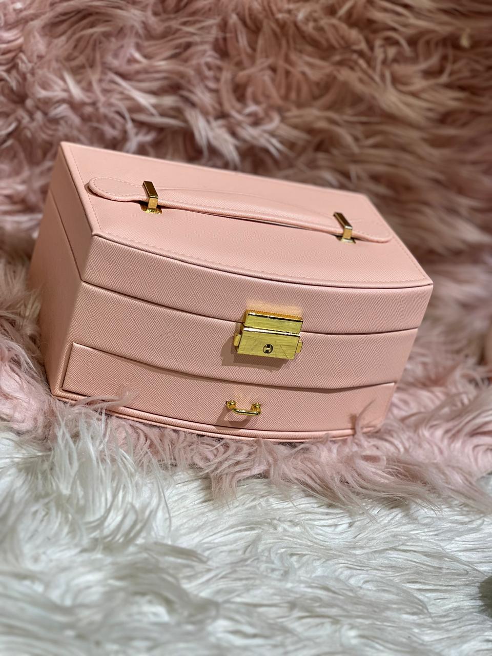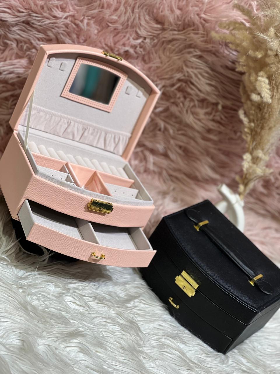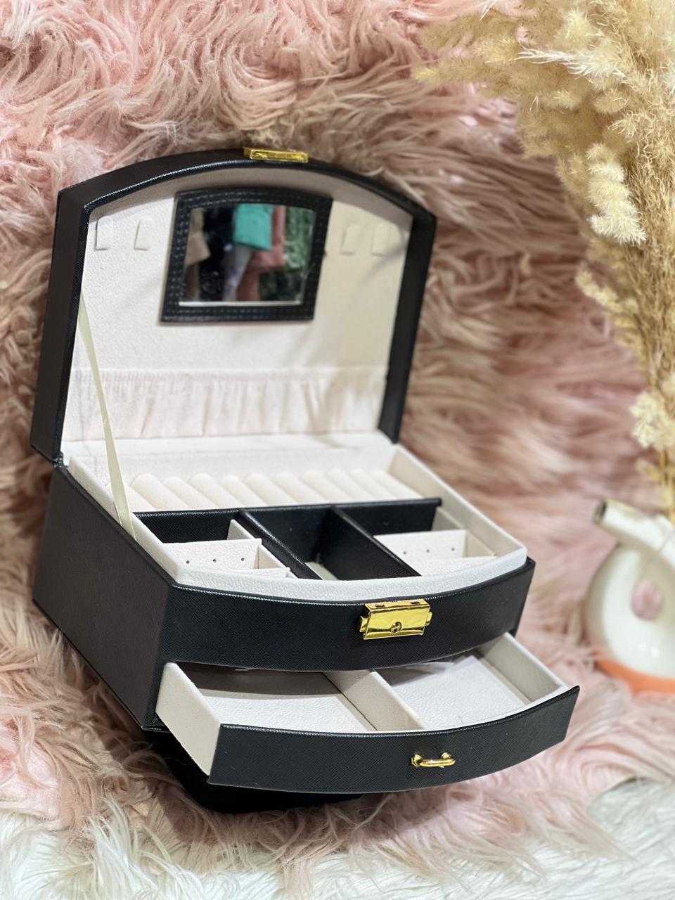 صندوق مجوهرات مميز بطابع كلاسيكي أنيق مع مرآة صغيرة وعملية