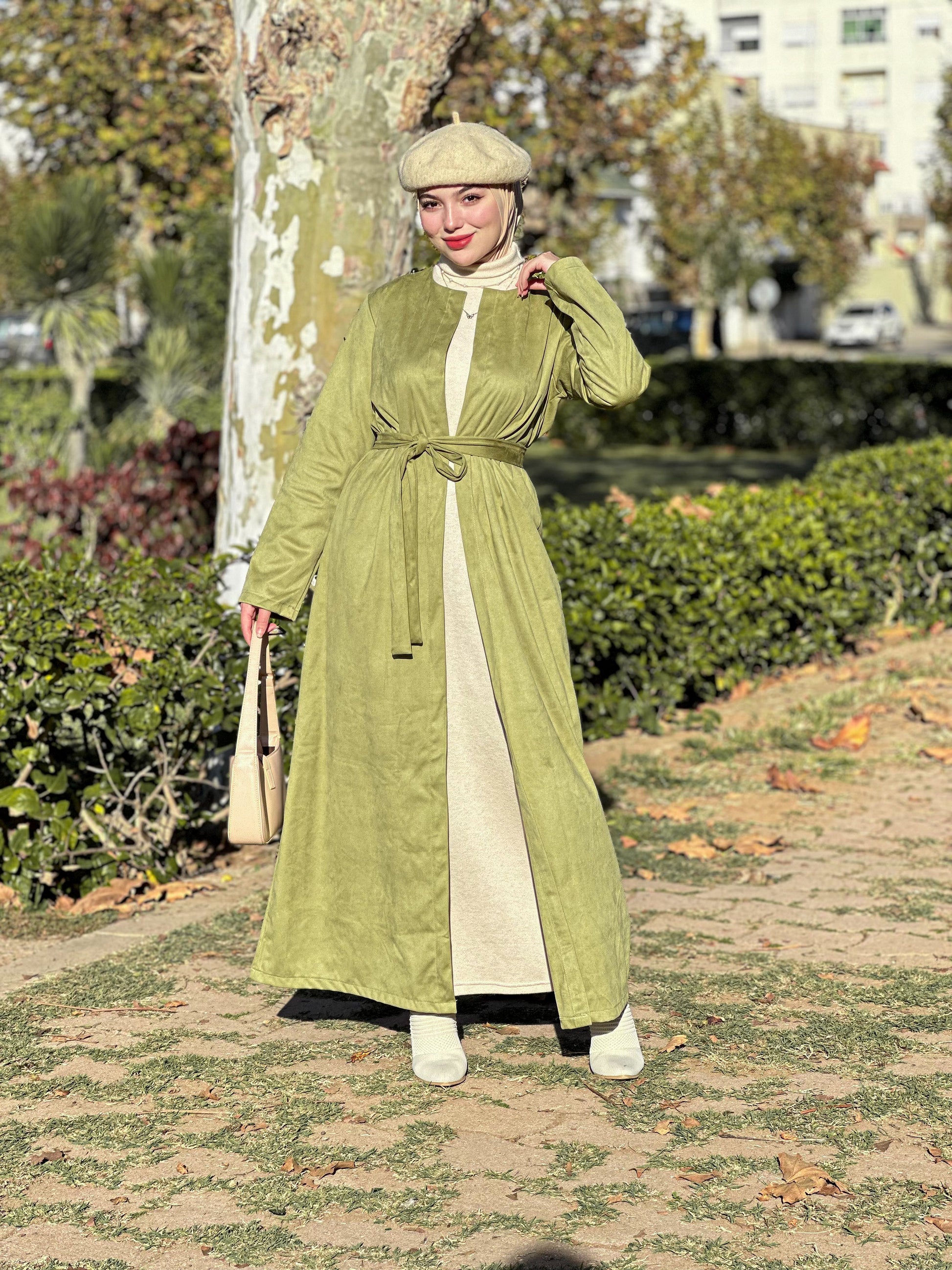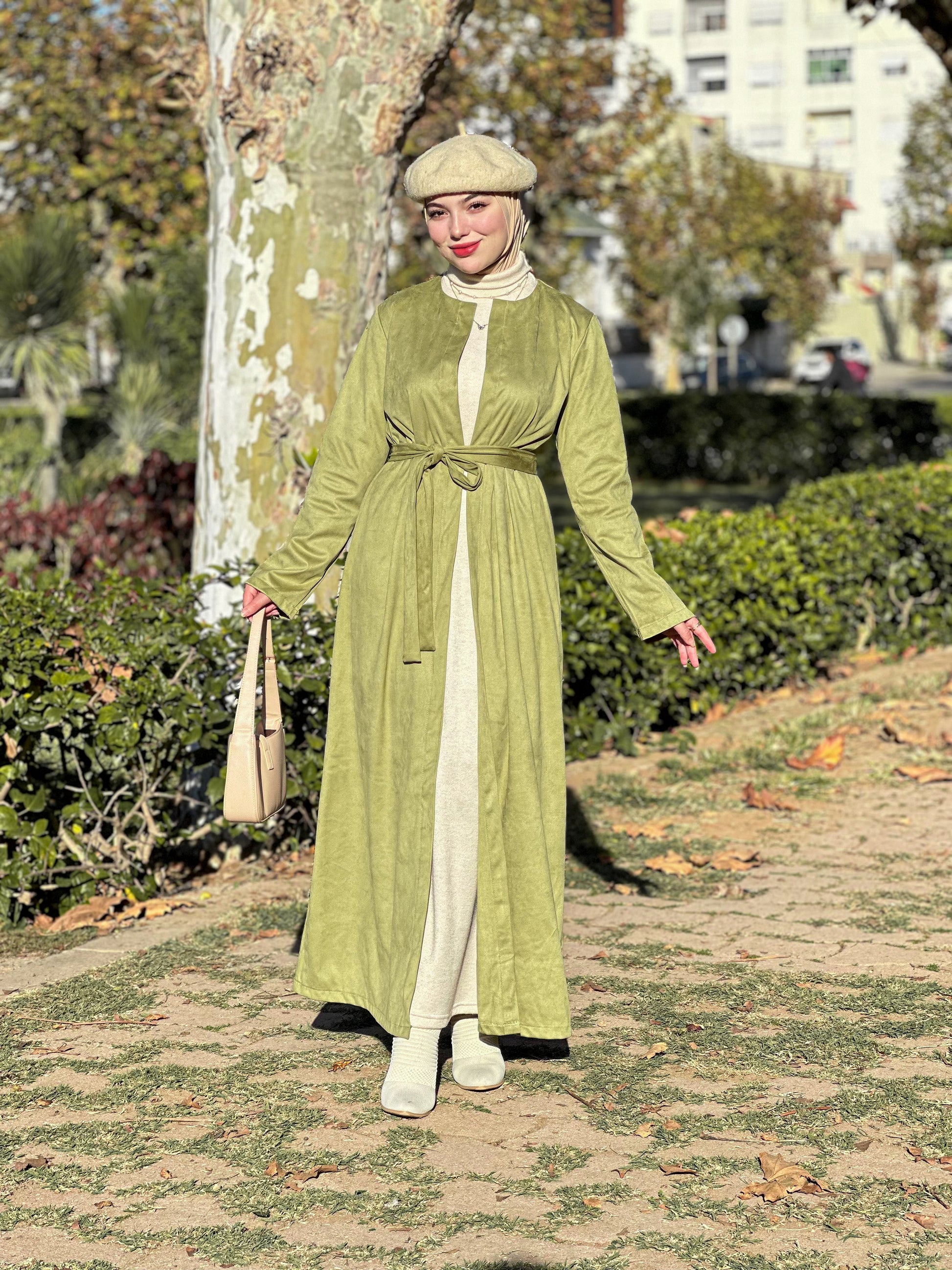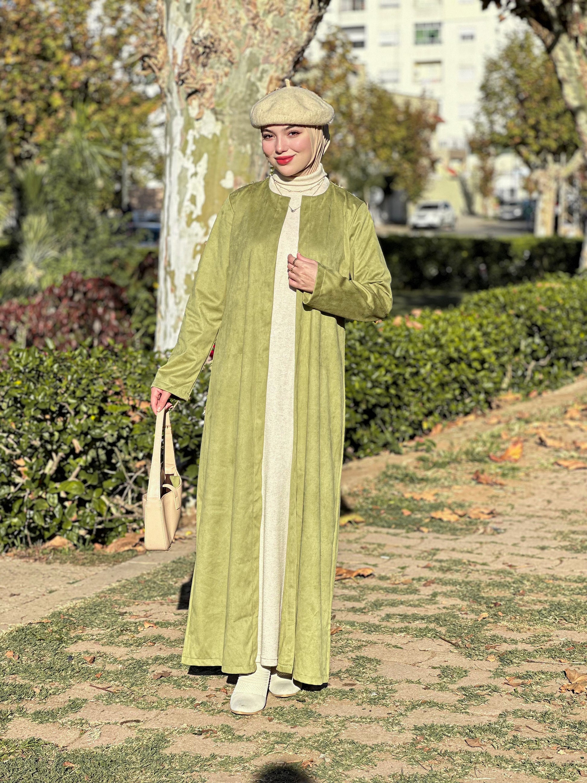 -كيمونو طويل بلون أخضر من ثوب دان مستورد -جودة أولى