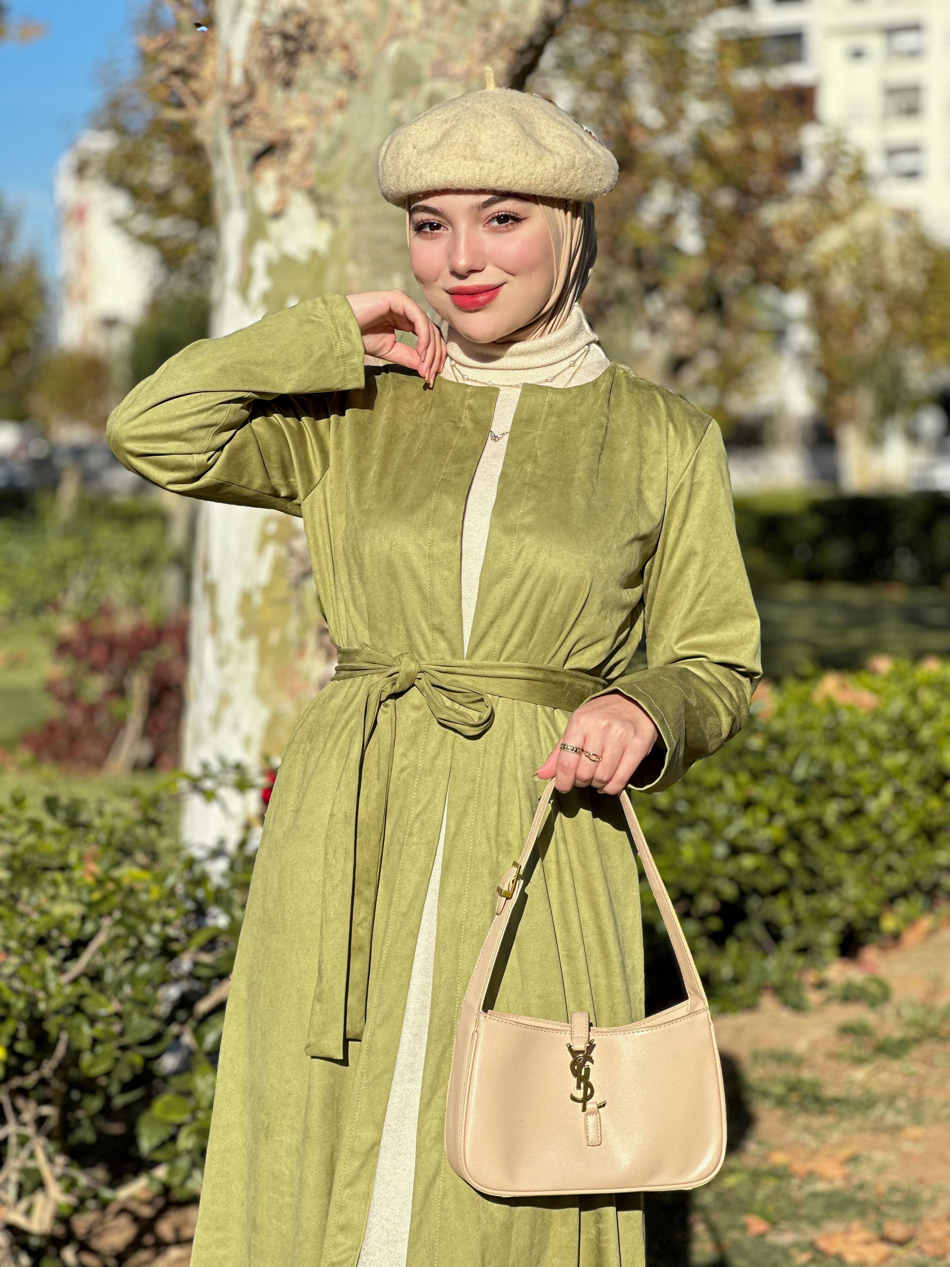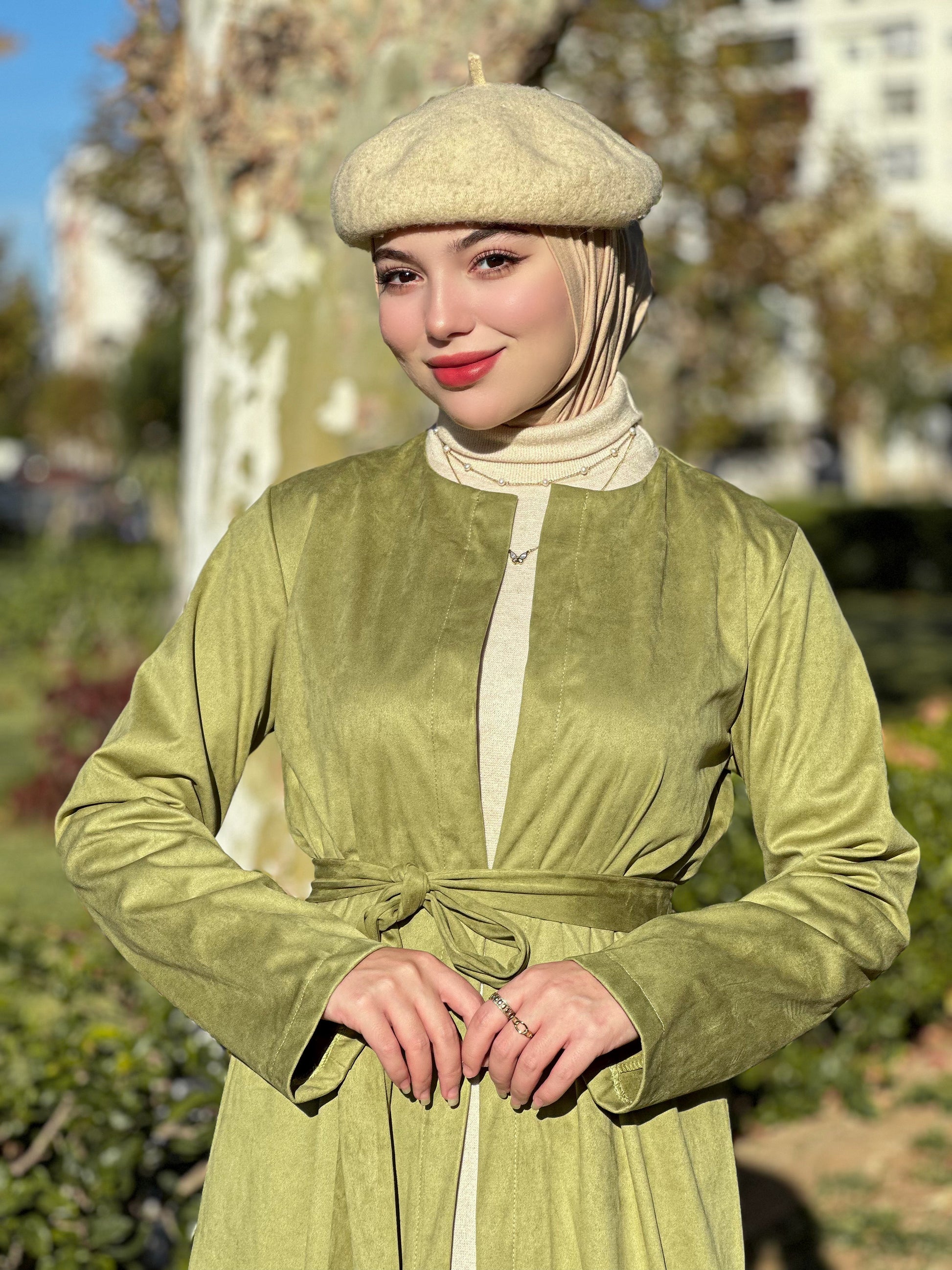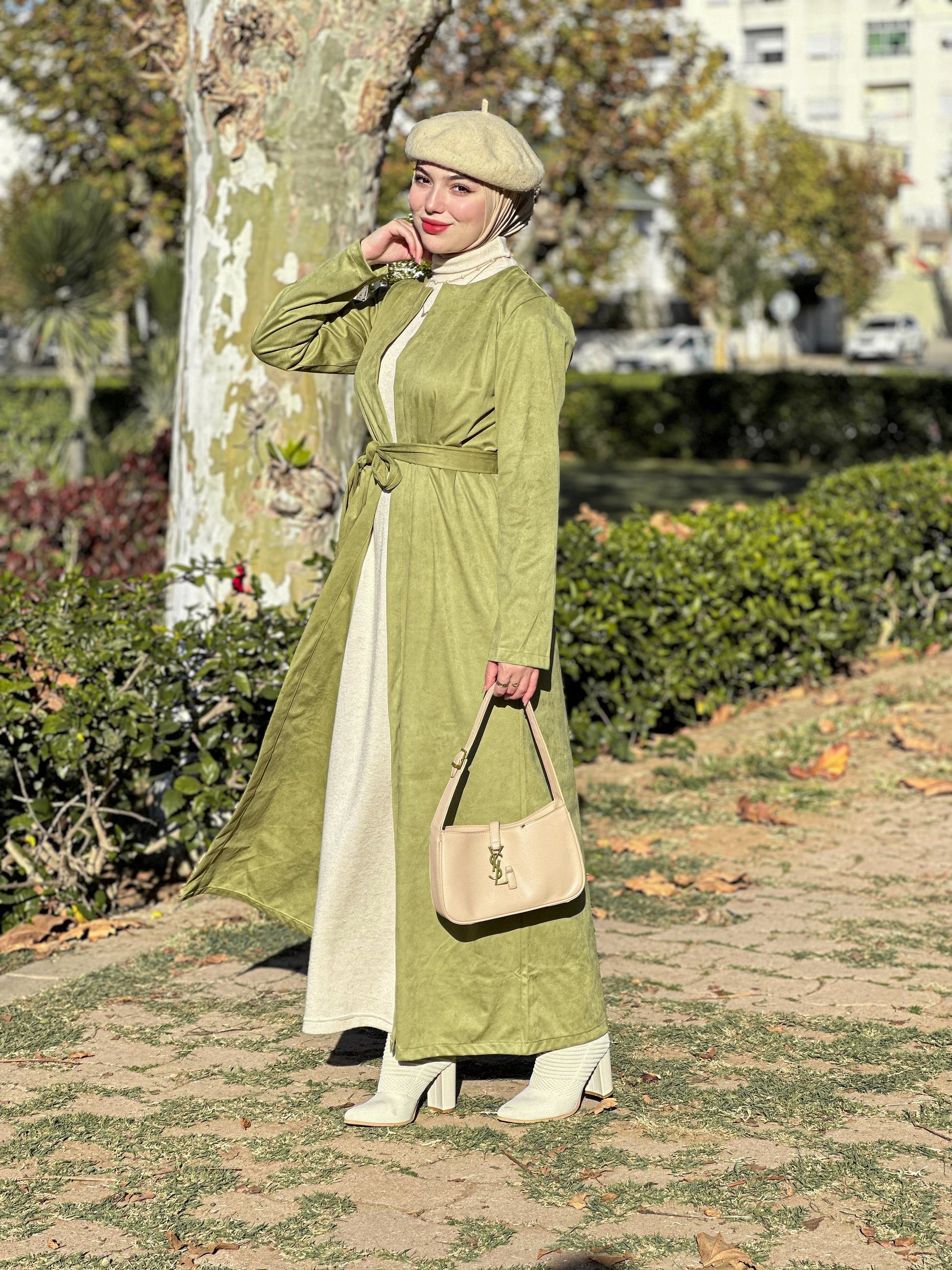 -كيمونو طويل بلون أخضر من ثوب دان مستورد -جودة أولى