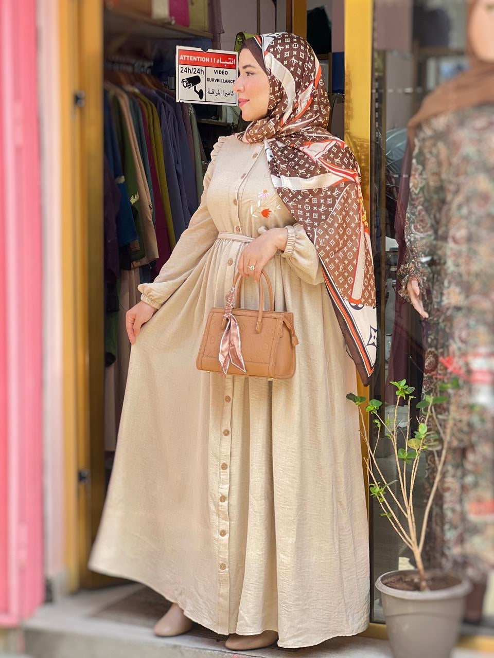 فستان طويل بلون بيج من ثوب لولان - بجودة أولى