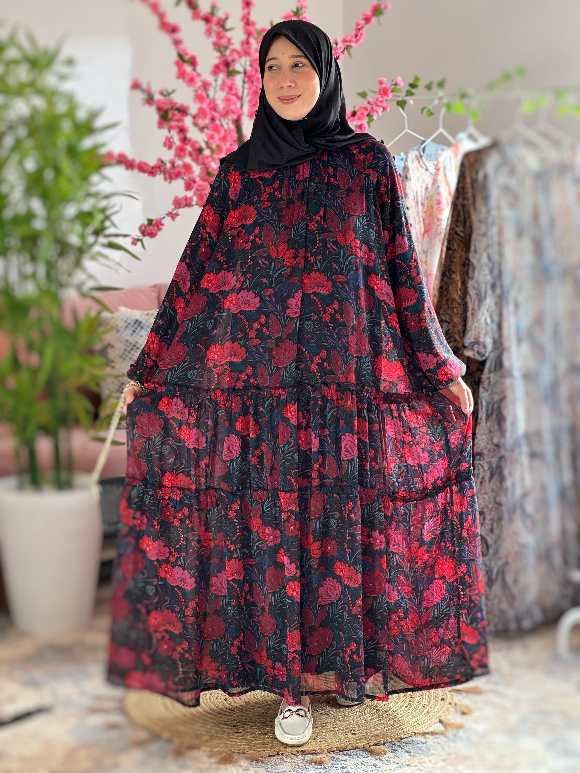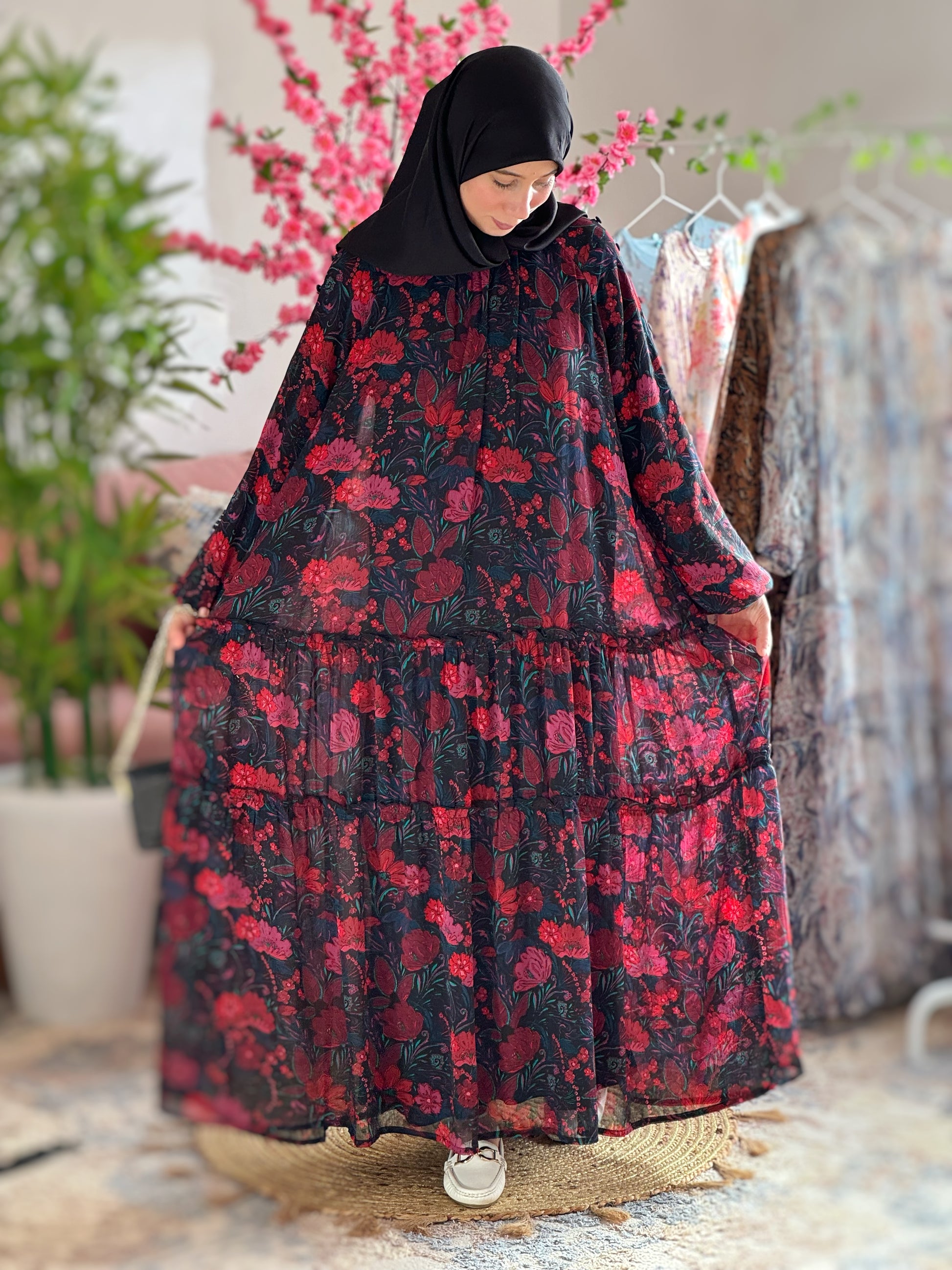 فستان طويل من ثوب موسلين مستود من بولونيا جودة أولى وبتصميم جدا راقي