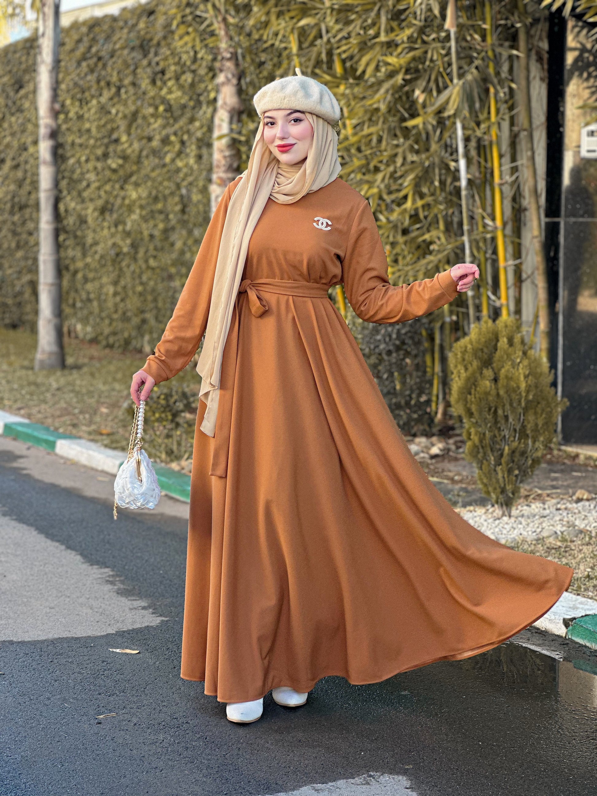 فستان طويل بلون كاميل من ثوب سكوبا - بجودة أولى
